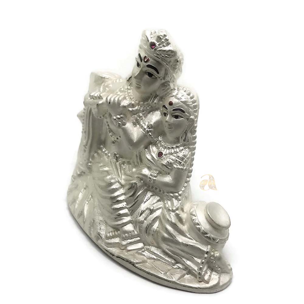 999 Pure Silver Radha Krishna Silver idol is made of 99.9% pure silver and is custom handmade . Reference Idols were first crafted in clay by Skilled and Reputed Sculptors and then converted into Silver Form, conforms to Vastu and Indian religious traditions. Made with Excellent Silver hardness and superior quality..
