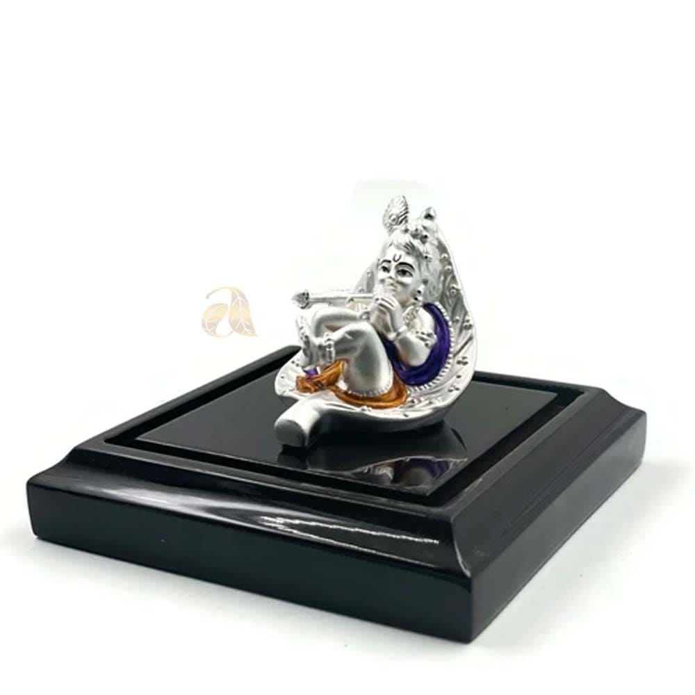 999 Pure Silver Krishna / LORD Krishna / Bal Gopal Silver idol is made of 99.9% pure silver and comes with cherry colored Square wood stand and hard acrylic Removable Square cover. Reference Idols were first crafted in clay by Skilled and Reputed Sculptors and then converted into Silver Form, conforms to Vastu and Indian religious traditions. Made with Excellent Silver hardness and superior quality.