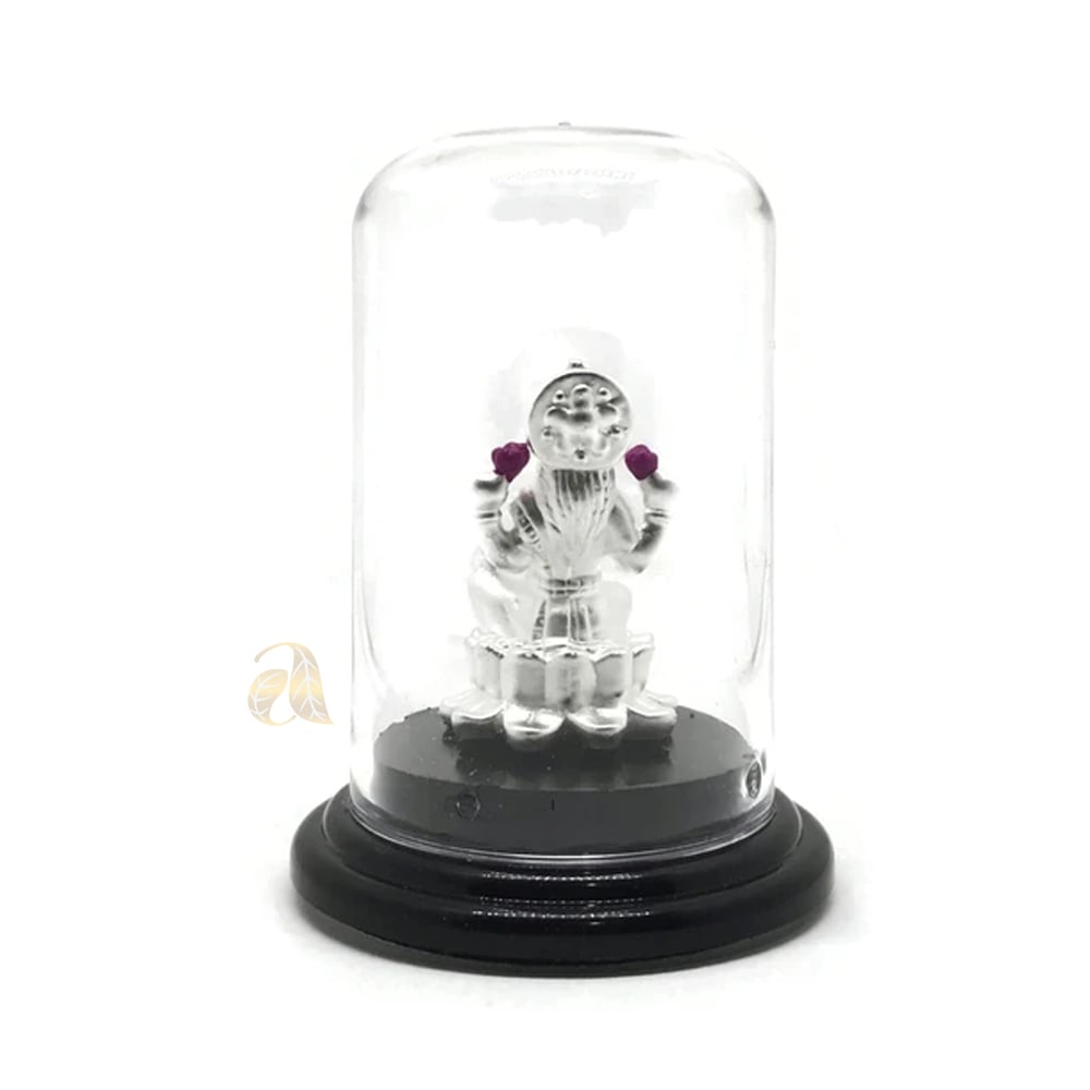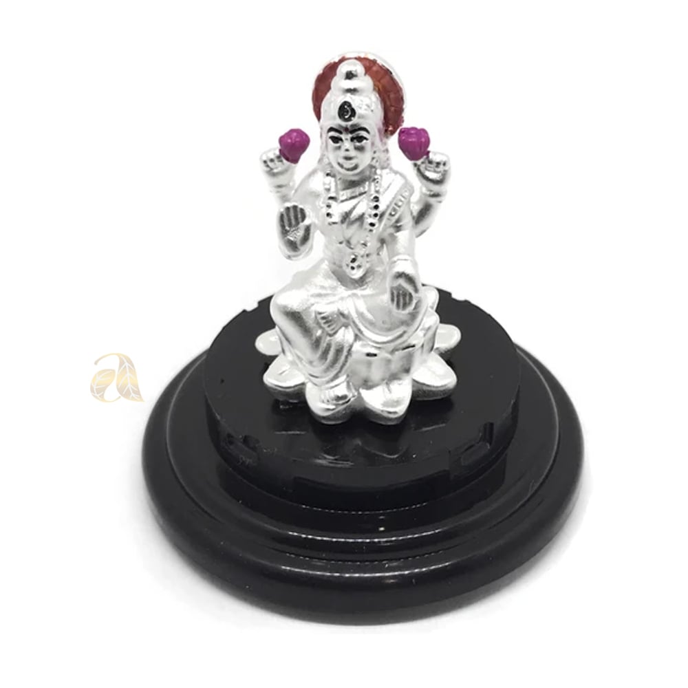 999 Pure Silver GODDESS LAKSHMI / LAXMI Silver idol is made of 99.9% pure silver and comes with cherry colored Round wood stand and hard acrylic Removable Round cover. Reference Idols were first crafted in clay by Skilled and Reputed Sculptors and then converted into Silver Form, conforms to Vastu and Indian religious traditions. Made with Excellent Silver hardness and superior quality.