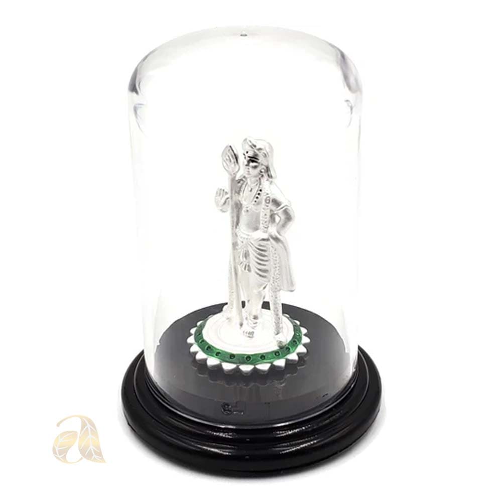 999 Pure Silver LORD MURUGAN / KARTIKEYA Silver idol is made of 99.9% pure silver and comes with cherry colored round wood stand and hard acrylic removable cover. Reference Idols were first crafted in clay by Skilled and Reputed Sculptors and then converted into Silver Form, conforms to Vastu and Indian religious traditions. Made with Excellent Silver hardness and superior quality.