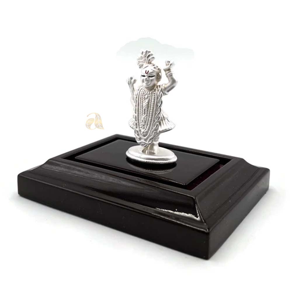 999 Pure Silver SRINATH JI  Silver idol is made of 99.9% pure silver and comes with cherry colored Rectangular wood stand and hard acrylic Removable Rectangular cover. Reference Idols were first crafted in clay by Skilled and Reputed Sculptors and then converted into Silver Form, conforms to Vastu and Indian religious traditions. Made with Excellent Silver hardness and superior quality..