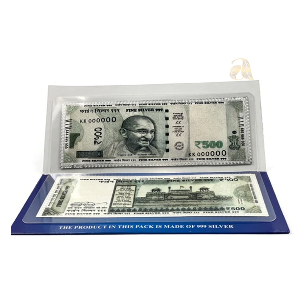 RS500 Indian Note is Handmade of 999 Silver metal. Replica note is made of 99.9% pure silver and comes with hard laminated packaging and hard envelope. Certified & Hallmarked . Not a valid monetary instrument and not an Govt. Of India issued monetary instrument, just a replica and monetary value limited to silver weight of note. Whatever you see in picture what you get.
