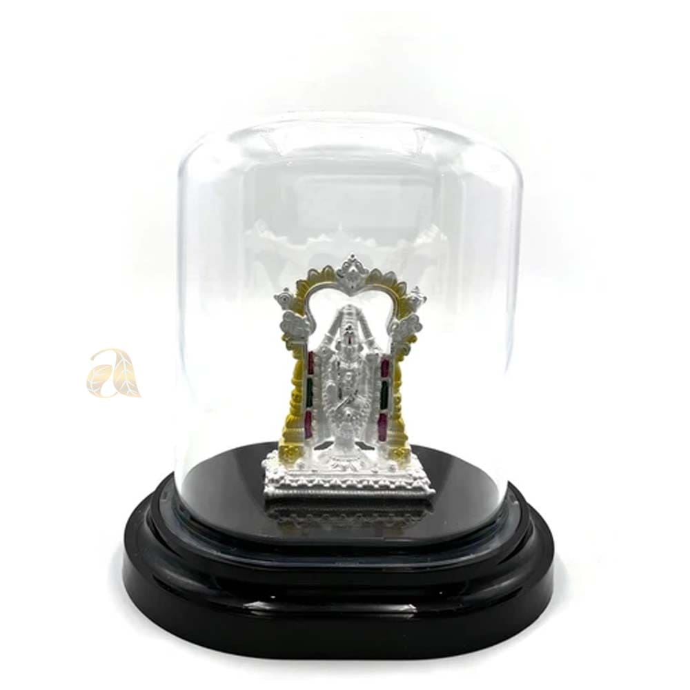 999 Pure Silver TIRUPATHI BALAJI / VENKETESWARA Silver idol is made of 99.9% pure silver and comes with cherry colored Oval wood stand and hard acrylic NON-removable cover. Reference Idols were first crafted in clay by Skilled and Reputed Sculptors and then converted into Silver Form, conforms to Vastu and Indian religious traditions. Made with Excellent Silver hardness and superior quality.