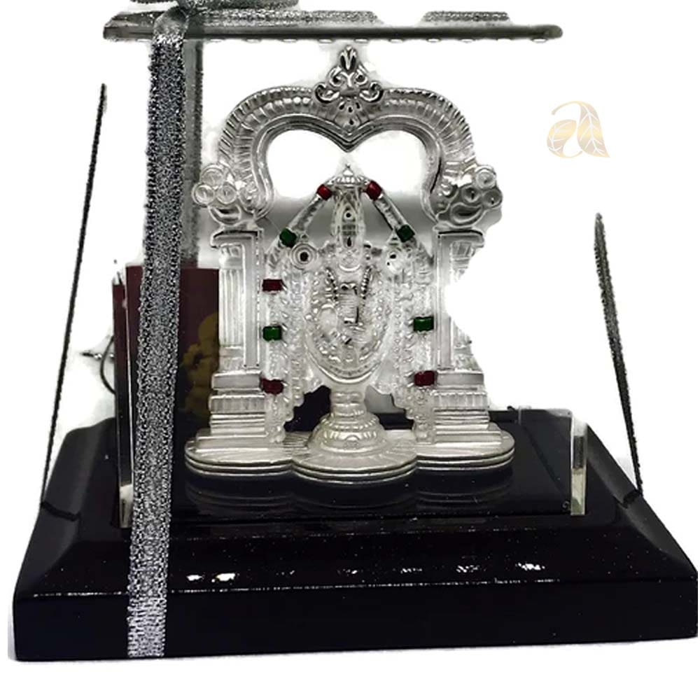 999 Pure Silver TIRUPATHI BALAJI / VENKETESWARA Silver idol is made of 99.9% pure silver and comes with cherry colored Rectangular wood stand and hard acrylic Removable Rectangular cover. Reference Idols were first crafted in clay by Skilled and Reputed Sculptors and then converted into Silver Form, conforms to Vastu and Indian religious traditions. Made with Excellent Silver hardness and superior quality.
