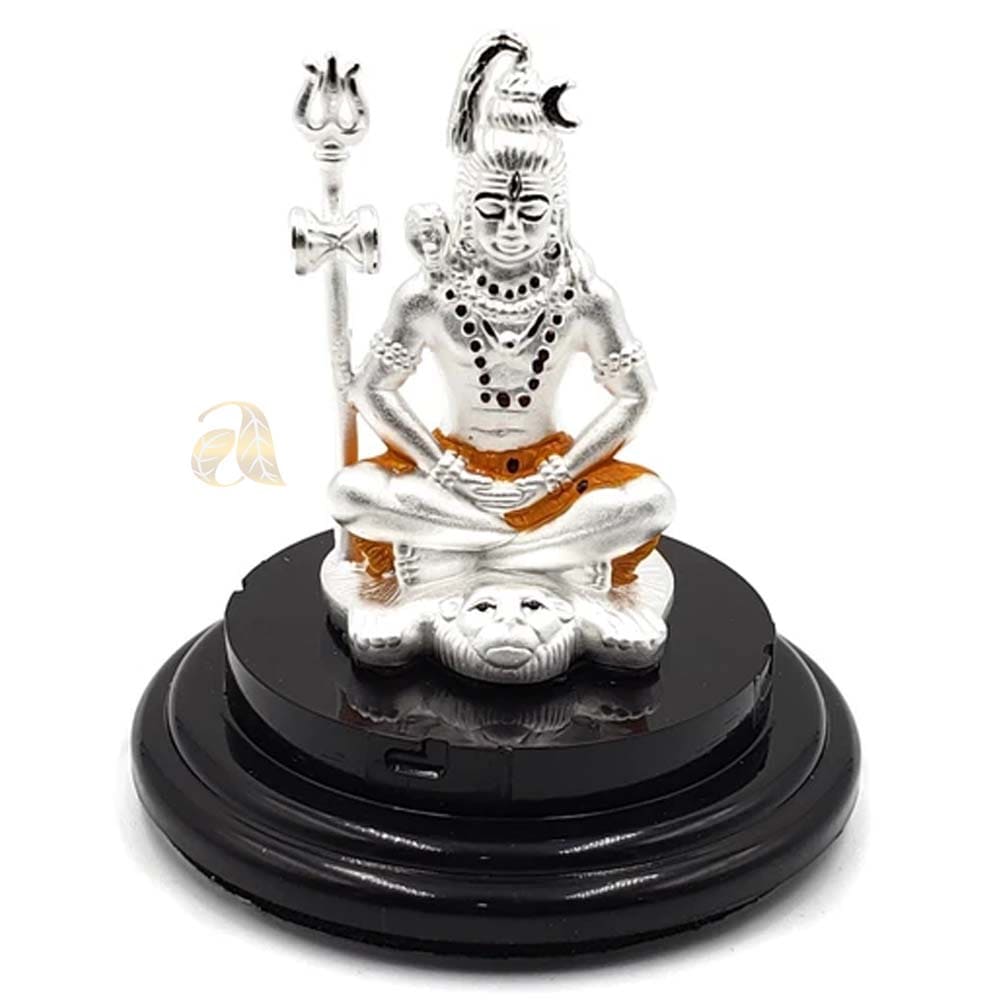 999 Pure Silver LORD SHIVA Silver idol is made of 99.9% pure silver and comes with cherry colored Round wood stand and hard acrylic Removable Round cover. Reference Idols were first crafted in clay by Skilled and Reputed Sculptors and then converted into Silver Form, conforms to Vastu and Indian religious traditions. Made with Excellent Silver hardness and superior quality.
