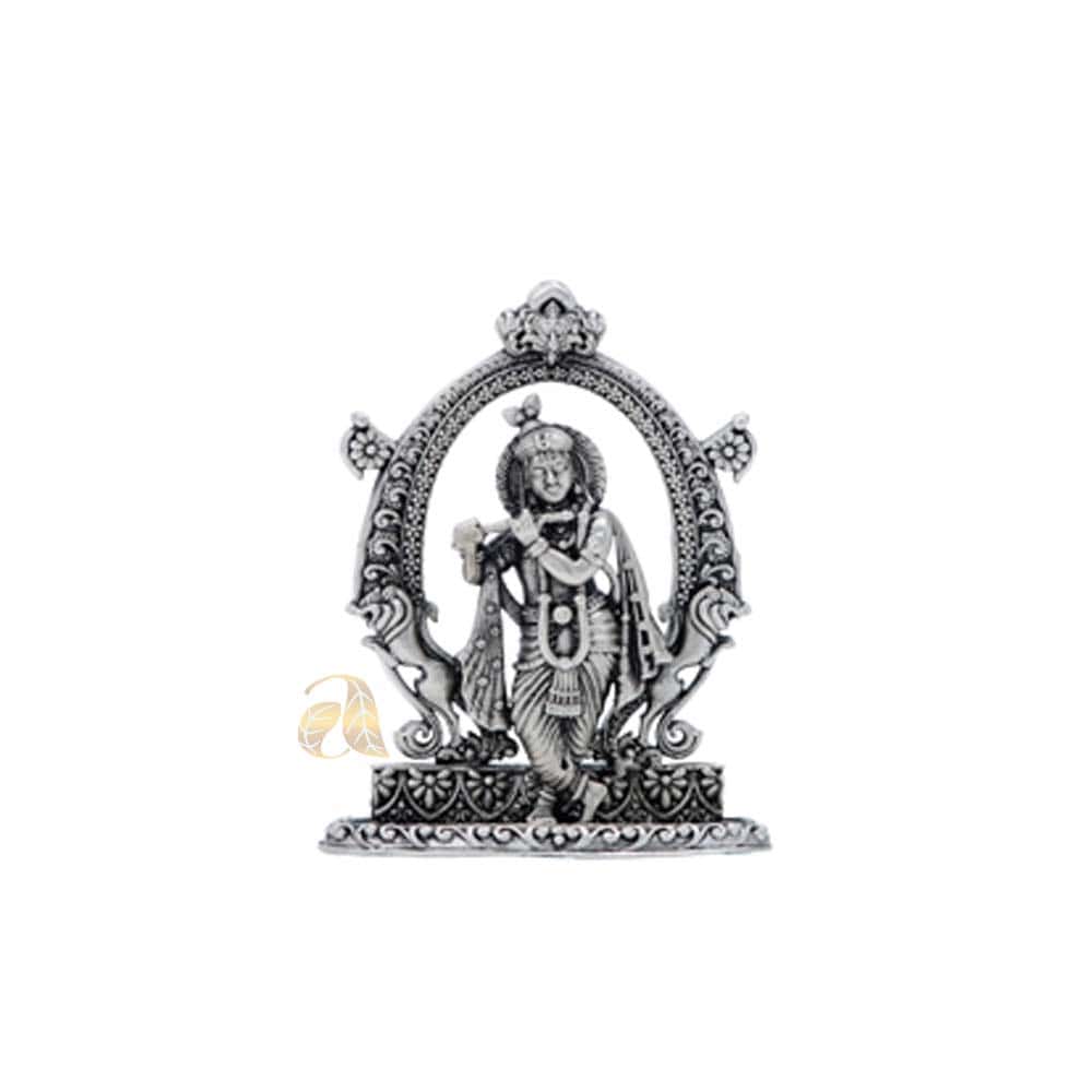 This handcrafted antique silver idol of Lord Krishna on metal durable stand is made of pure white metal.