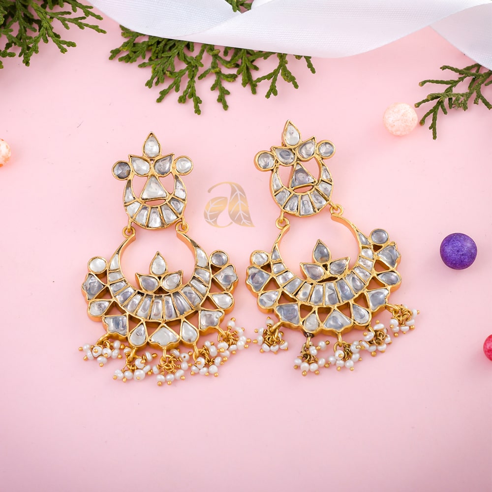 Additional Details: Gold Plated Pure Silver Earrings With Kundan & Pearl Silver Jewellery.